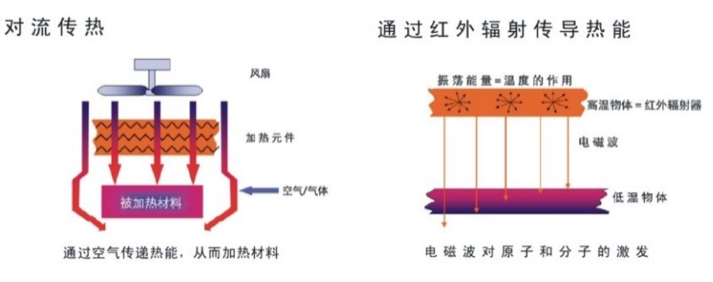 傳統(tǒng)熱風(fēng)固化系統(tǒng),需將空氣加熱至固化溫度,再通過(guò)熱對(duì)流及熱傳導(dǎo)的形式,將工件溫度提升。